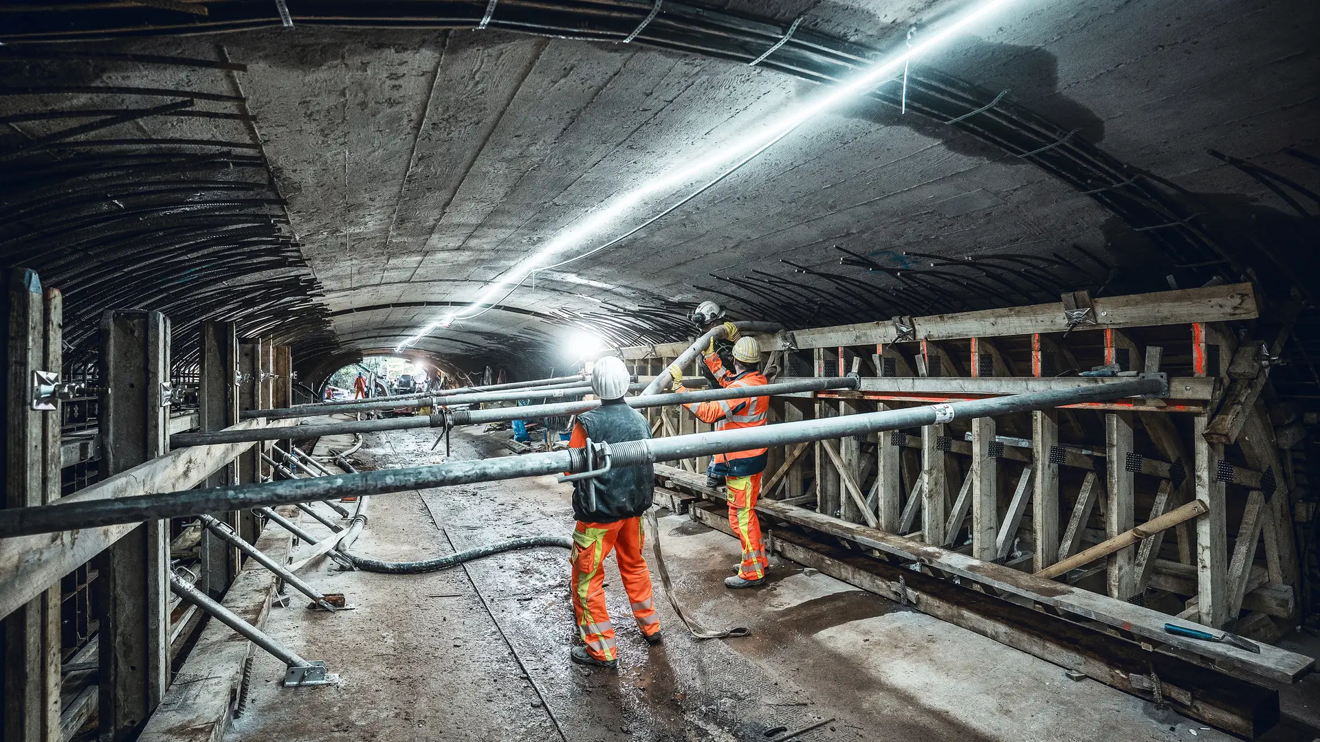 650 m³ of in-situ concrete, 1,000 t of shotcrete and 120 t of reinforcement cages will be in-stalled.